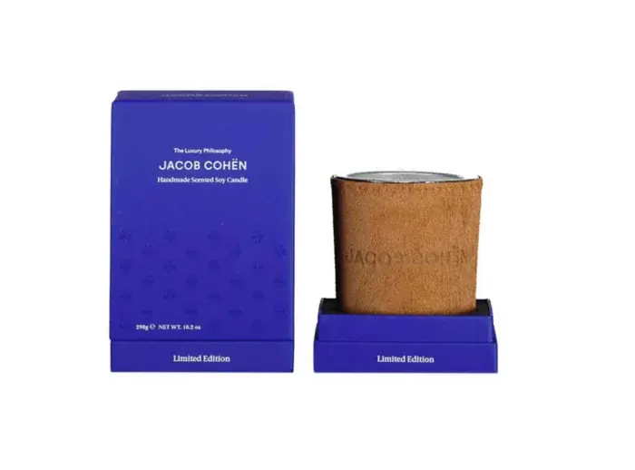 Ontdek de exclusieve Jacob Cohen Geurkaars in de kleur bruin. Een limited edition meesterwerk vervaardigd met hetzelfde vakmanschap en kwaliteit als de Jacob Cohen jeans. Deze unieke geurkaars, met een Jacob Cohen logo voorop en vervaardigd van hoogwaardig ponyhaar, straalt niet alleen elegantie uit, maar verwent ook de zintuigen met een heerlijke geur. Elk exemplaar is met de hand gemaakt, waardoor elke kaars uniek is. Geniet van een langdurige en luxueuze ervaring met deze prachtige geurkaars die een onmiskenbare touch van stijl toevoegt aan de ruimte waar hij in staat.